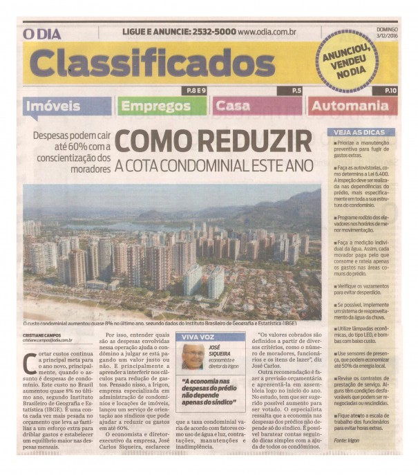 Veículo: O Dia Data: 03/01/2016 Página: capa Editoria: Imóveis